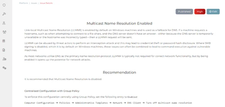 We don’t just focus on vulnerability discovery, but we also give significant detail on remediating discovered issues and importantly, hardening systems against exploitation.